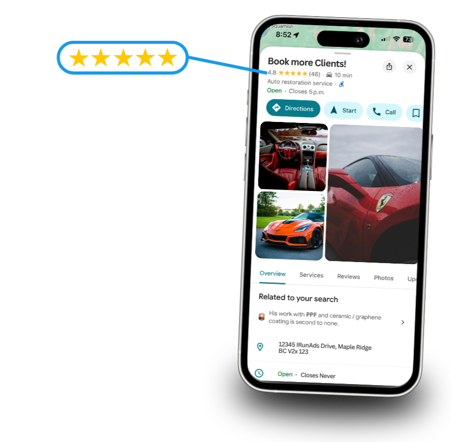 We tie everything back to results you can measure: booked PPF and coating jobs. Every two weeks, you'll see a report showing exactly how much you spent, how many leads came in, and the revenue they generated. No vague "likes" or vanity metrics.